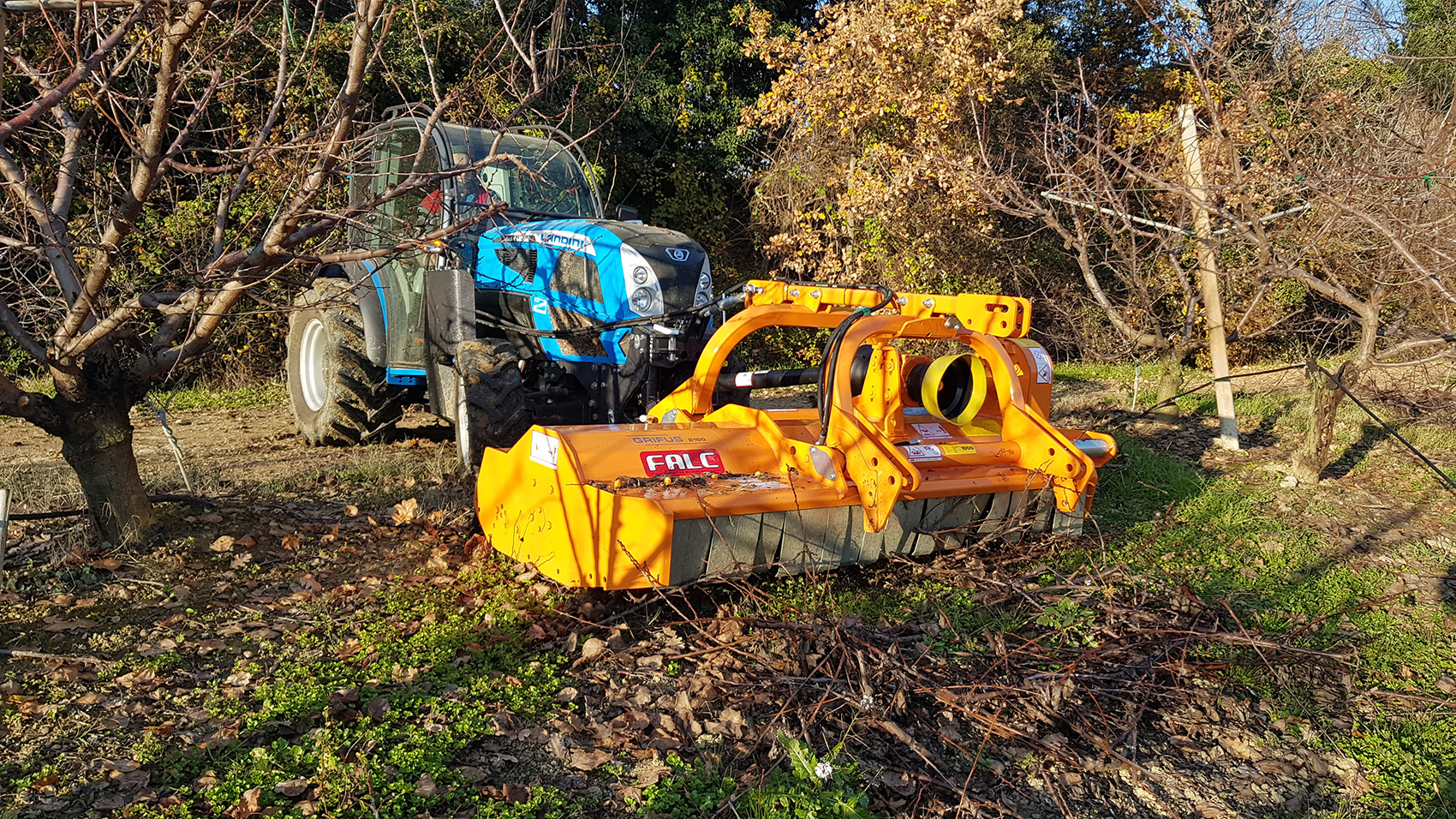 Shredder with hydraulic offset for grass, medium prunings and vegetal residues.